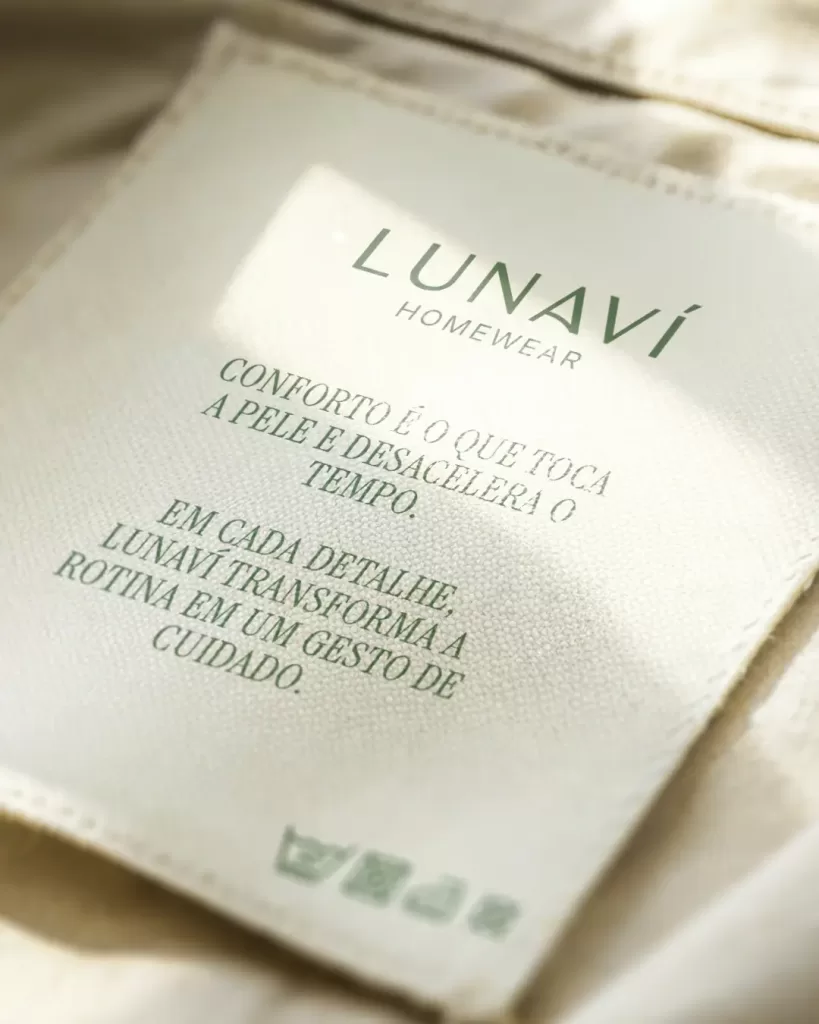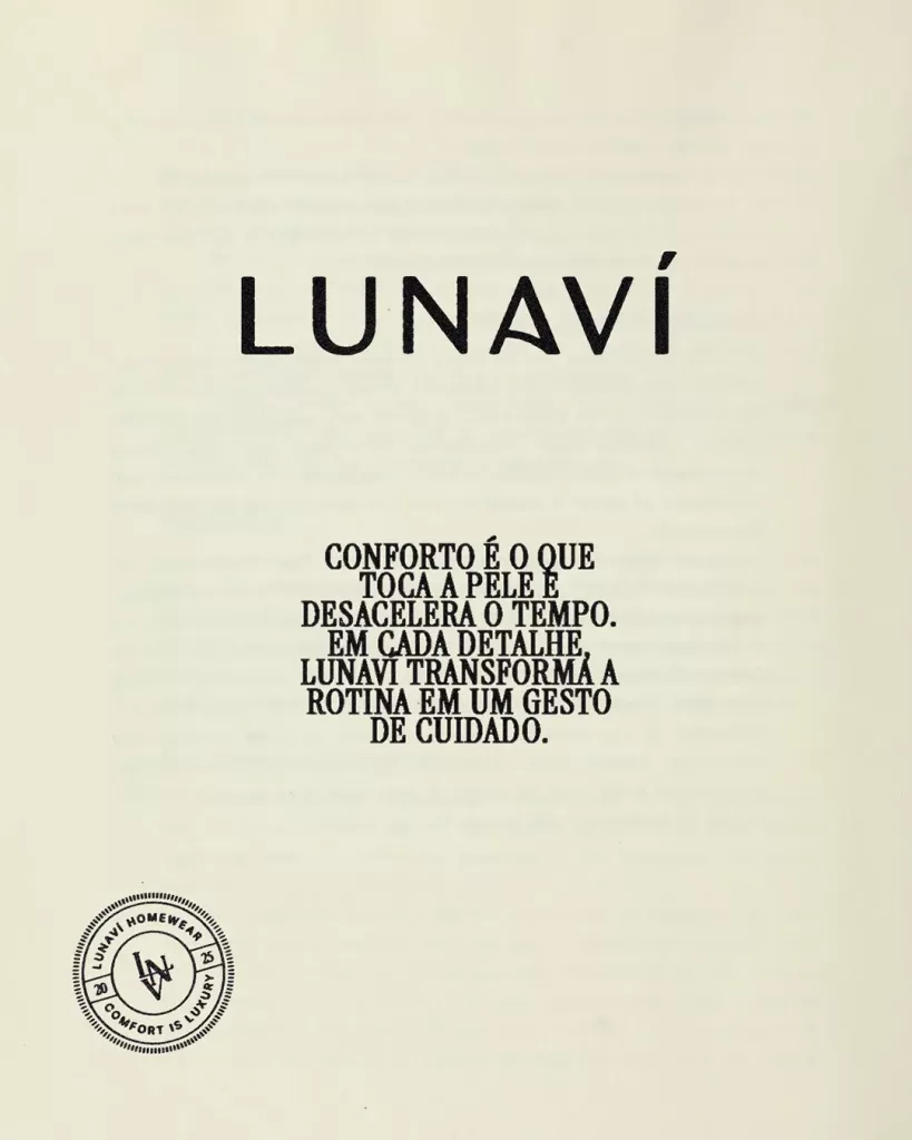 “Comfort is Luxury” não é um slogan decorativo. É uma inversão estratégica de valor. Em vez de associar luxo a ostentação ou excesso, Lunaví redefine luxo como pausa, textura, tempo e presença.